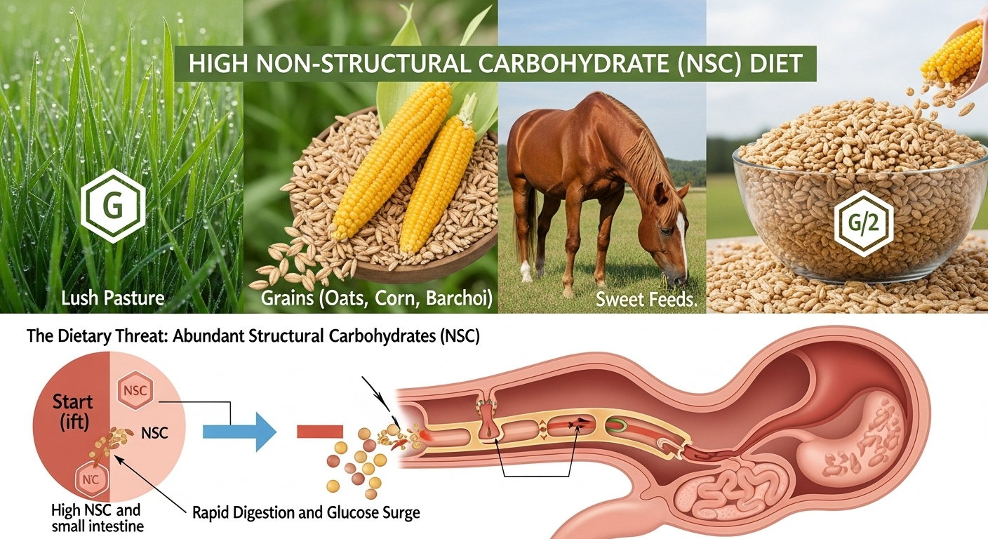 The foundation of managing insulin resistance in horses lies in understanding how non-structural carbohydrates trigger dangerous metabolic responses. When horses consume feeds containing high levels of NSCs—which include sugars, starches, and fructans—their bodies respond with significant insulin spikes that can persist for hours. These elevated insulin levels create a cascading effect that damages the delicate structures within the hoof, potentially leading to the painful and often devastating condition known as laminitis.